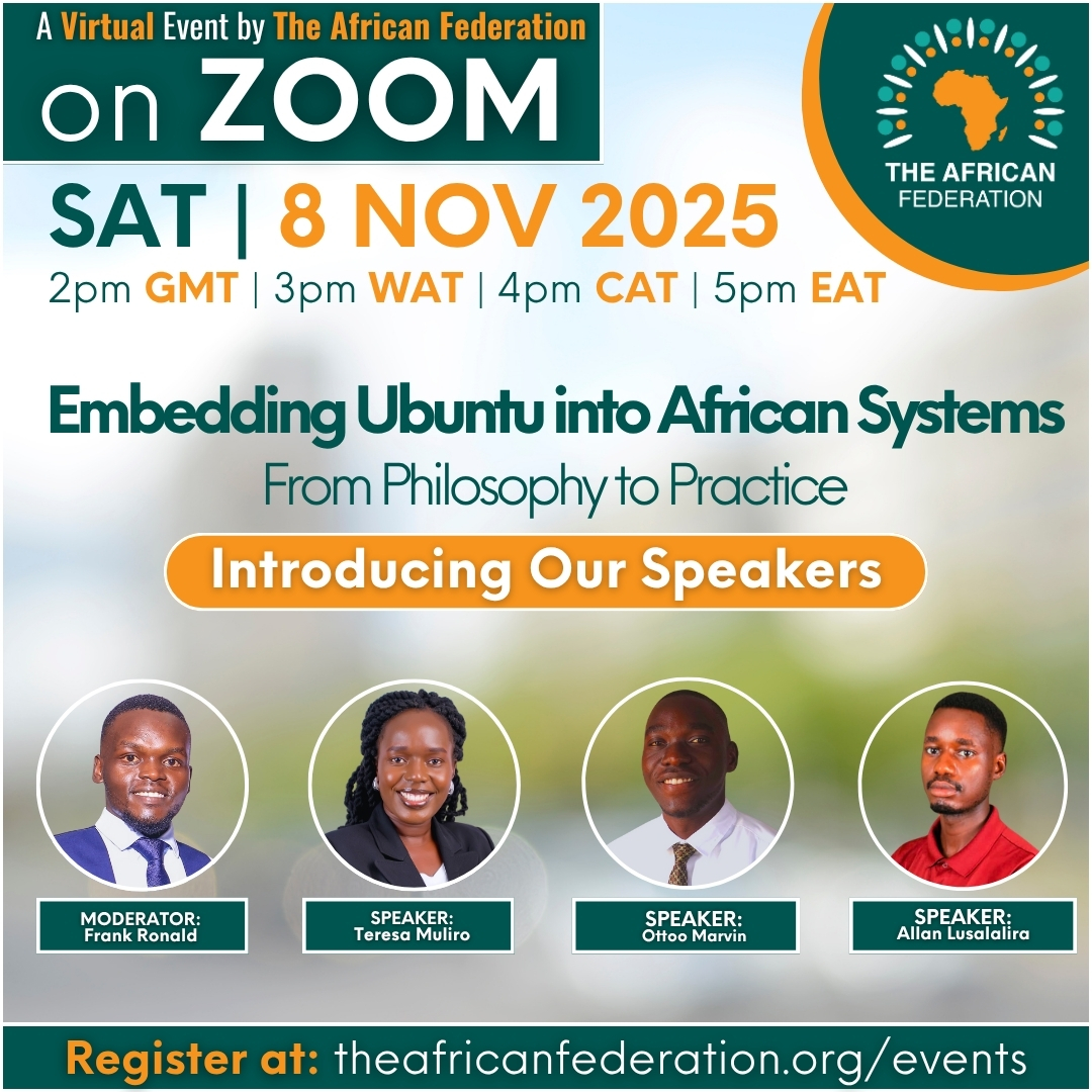 The African Federation is proud to open Ubuntu Month 2025 with a powerful dialogue focused on transforming Ubuntu from a cultural philosophy into a functional system for African governance, leadership, and community life.